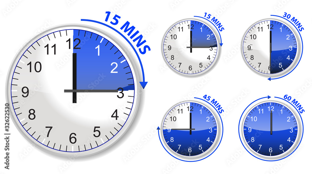 Set Of Blue Timer 15 30 45 And 60 Minutes Isolated On White Stock Vector Adobe Stock